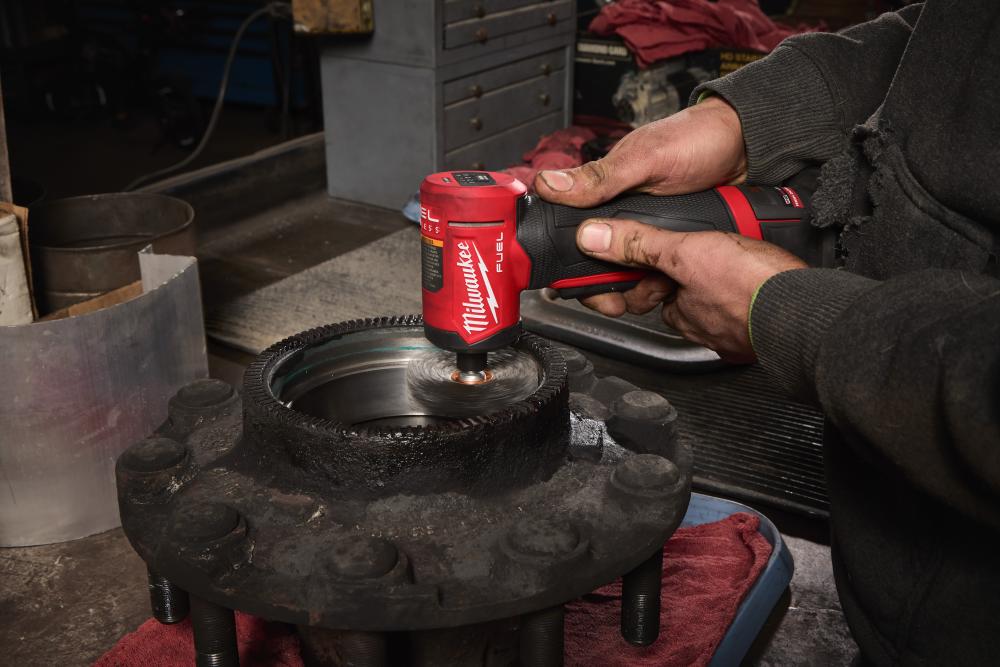 Dieser abgewinkelte Akku-Gradschleifer liefert vergleichbare Kraft wie ein druckluftbetriebenes Werkzeug und ermöglicht einen einfachen Zugang an schwer erreichbaren Stellen und eröffnet neue Anwendungsmöglichkeiten.
