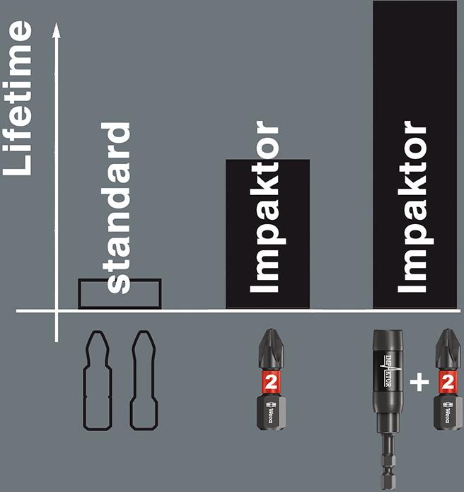 Vorteil: Die Kombination der 2-fachen Torsionszonen im Impaktor-Halter und der Torsionszone im Impaktor-Bit führt zum sogenannten TriTorsion-System.