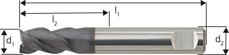 Vollhartmetall-Mini-Fräser TiAlN, 3 Schneiden, extrakurz, 45°