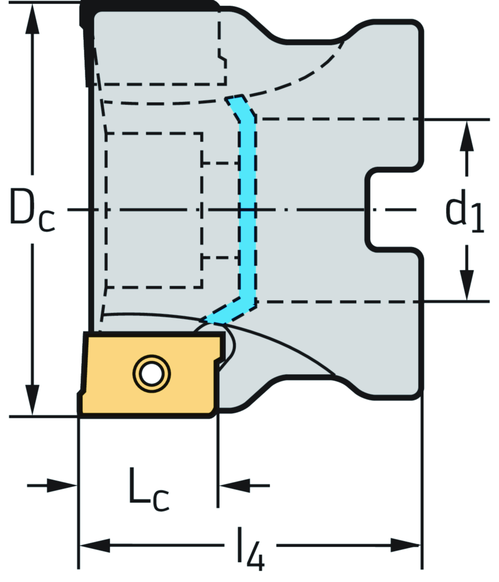 Eckfräser F4042 • Xtra·tec® • Zyl. Bohrung Quermitnahme DIN 138 • κ=90° • metrisch • AD .. 1807 .. • Dc=125mm • Z=8