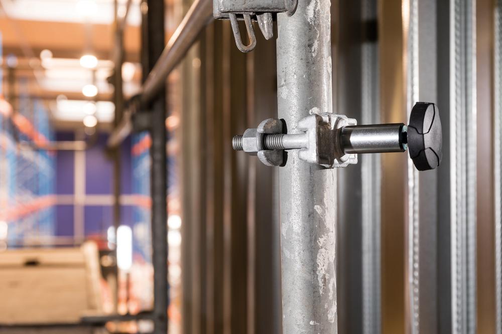 • Spezialhalterung aus Stahl für Gerüstmontage