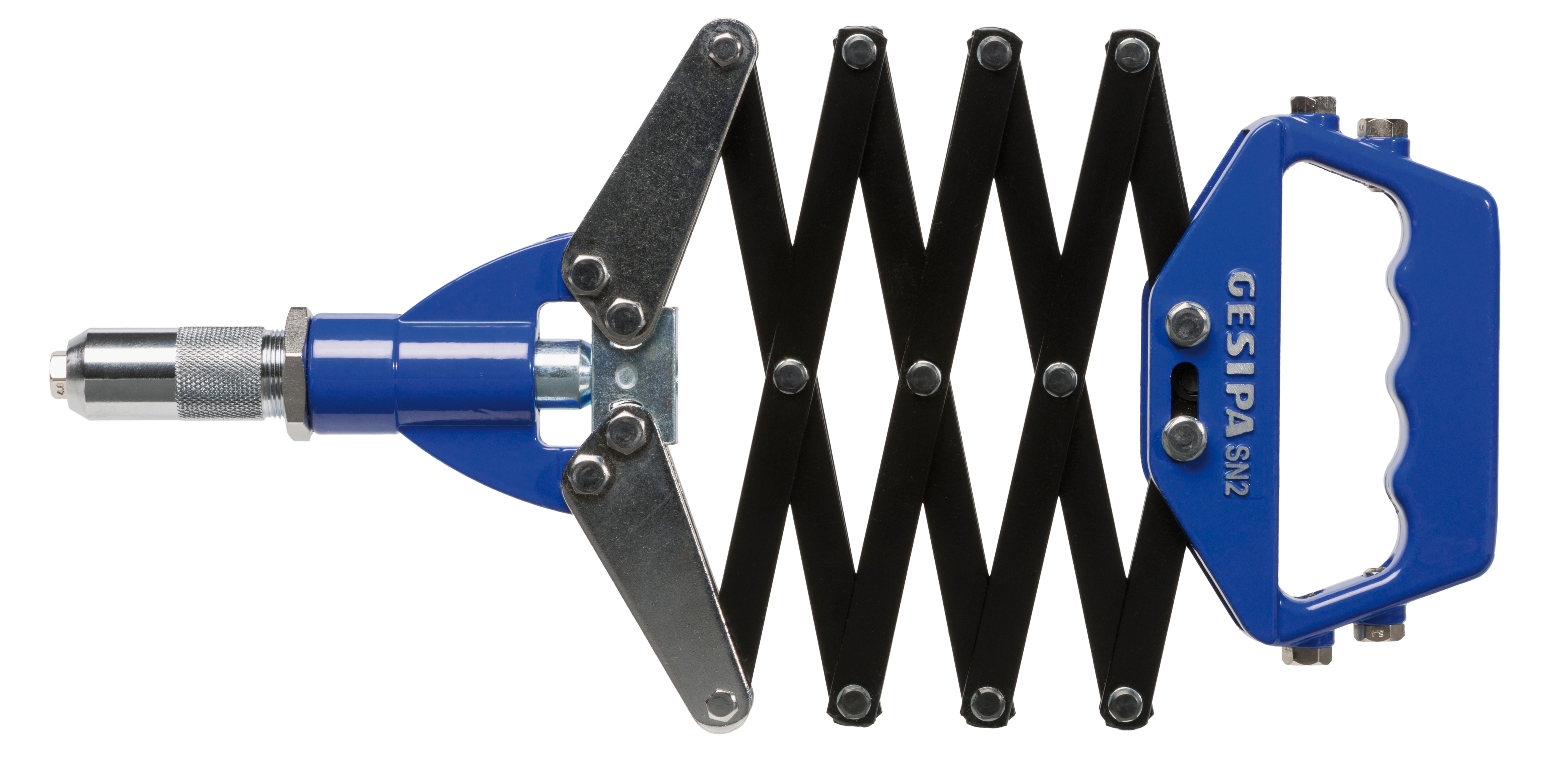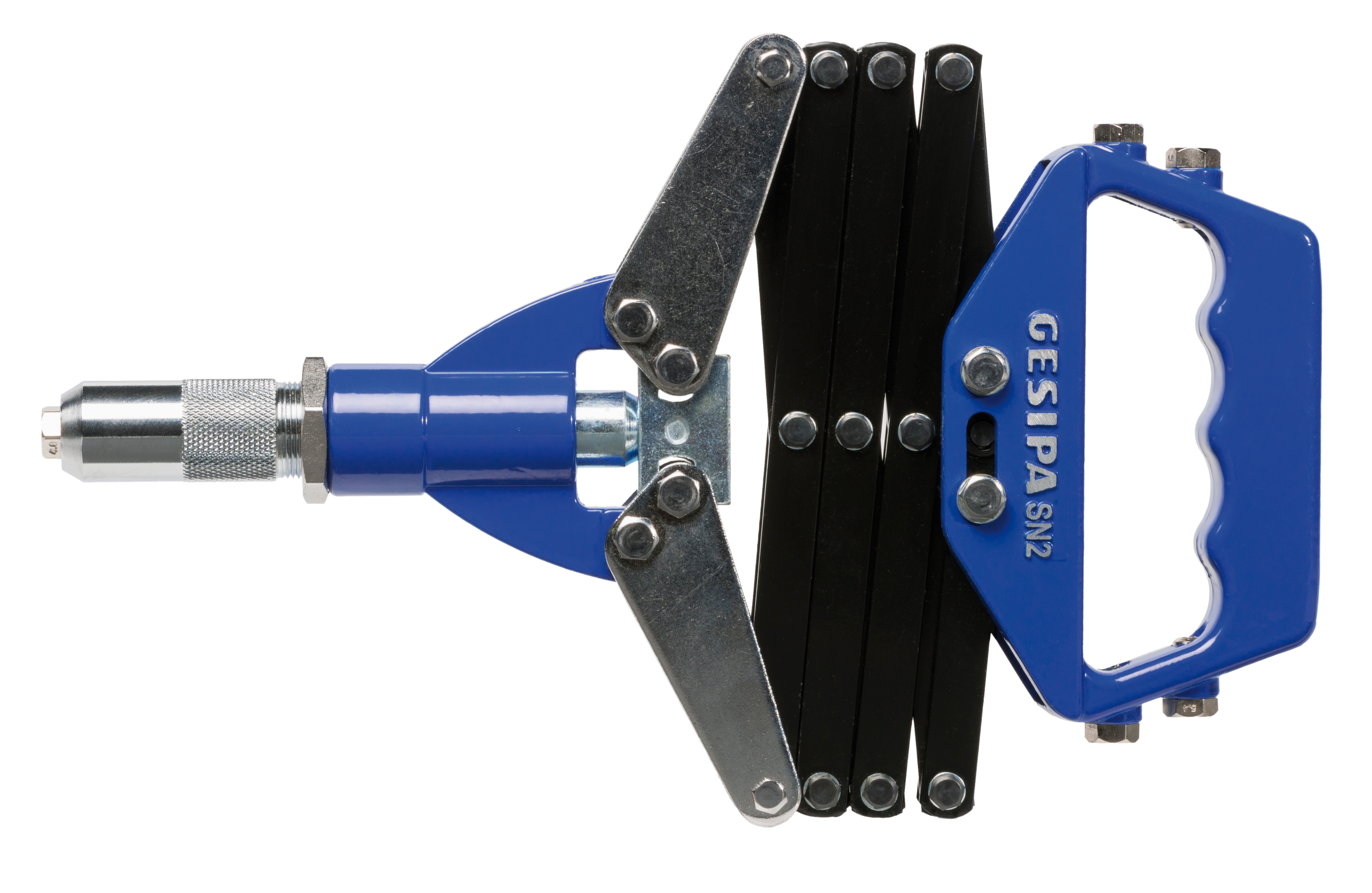 Setzt Blindniete von 3,0 bis 6,4 mm Ø aller Werkstoffe, G-Bulb-Blindniete bis 4,8 mm Ø.