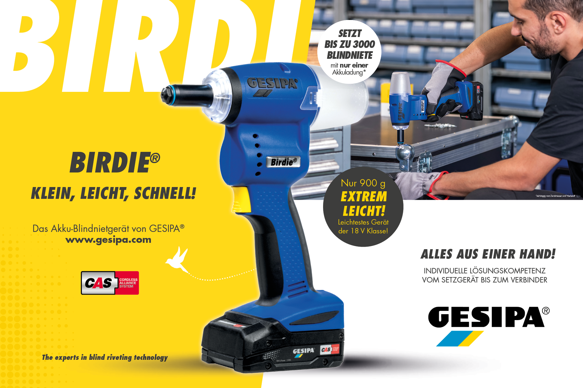 Die Marke GESIPA® entwickelt und fertigt Blindniete und Blindnietmuttern sowie hochwertige Werkzeuge zur Verarbeitung der Verbinder und gehört zur international tätigen SFS Group AG. GESIPA® selbst ist ebenfalls international vertreten und gewährleistet so bei Kunden aus aller Welt die Verfügbarkeit und den Service für alle GESIPA®–Produkte. Das Gesamtsystem, bestehend aus Verbindungselement, Verarbeitungsgerät und Montagetechnik bietet umfassende Lösungskompetenz für Industrie und Handel aus einer Hand