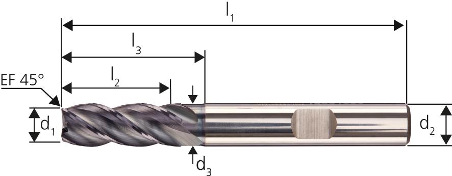 VHM-Schaftfräser, DIN 6527, Typ INOX, lang, Z4, Carapace+, FORTIS