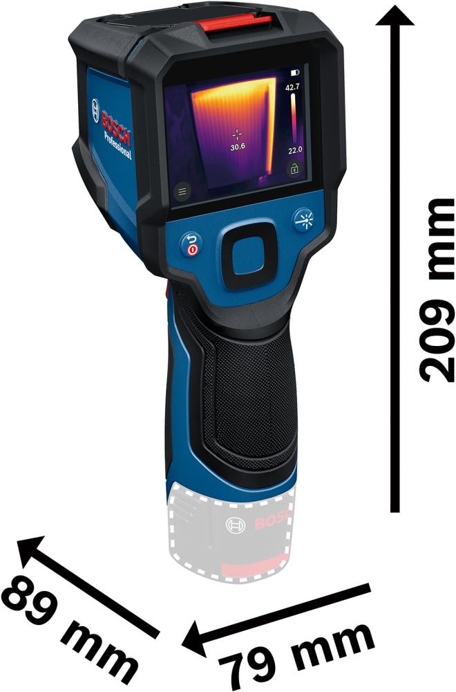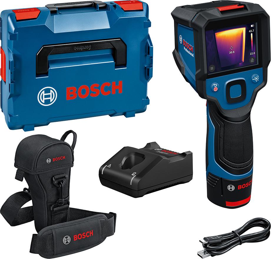 Lieferumfang: Wärmebildkamera, 1 Akku 12 V/2,0 Ah, Schnellladegerät GAL 12V-40, USB-C Kabel, Schutztasche, L-BOXX