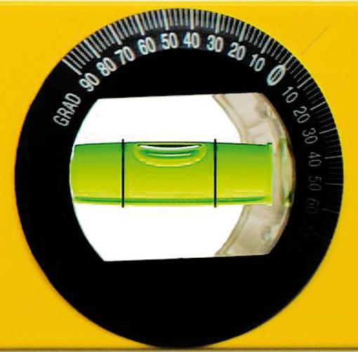 •	Je 1 Vertikal-, Horizontal- und drehbare Winkel-Libelle