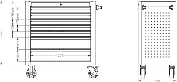 • 7 Schubfächer (5 x 75; 2 x 154 mm hoch) mit kugelgelagertem 100-%-Auszug